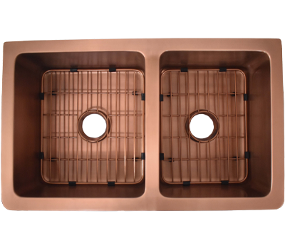 Pure 16-gauge copper construction has a high tolerance to stains, is very durable and is resistant to rust and corrosion. Use the free grid and strainer supplied with your purchase to protect the sink from hot surfaces and scratches. A Versailles copper sink is an outstanding addition to any kitchen.