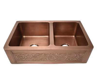 The vibrant color and appearance of our Versailles copper sink will make it an exquisite centerpiece for your kitchen. The elegant design is timeless and the sink will form a warm and natural patina that you will enjoy for a lifetime.